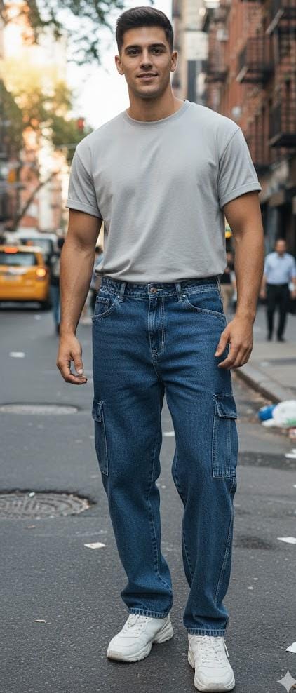 Blue denim baggy fit jeans