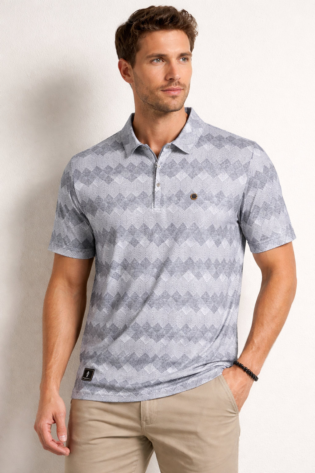 ash grey Patterned Polo T-shirt