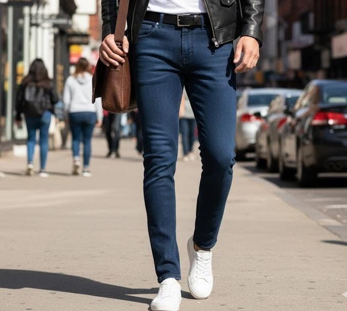 • Dark blue narrow fit jeans