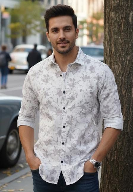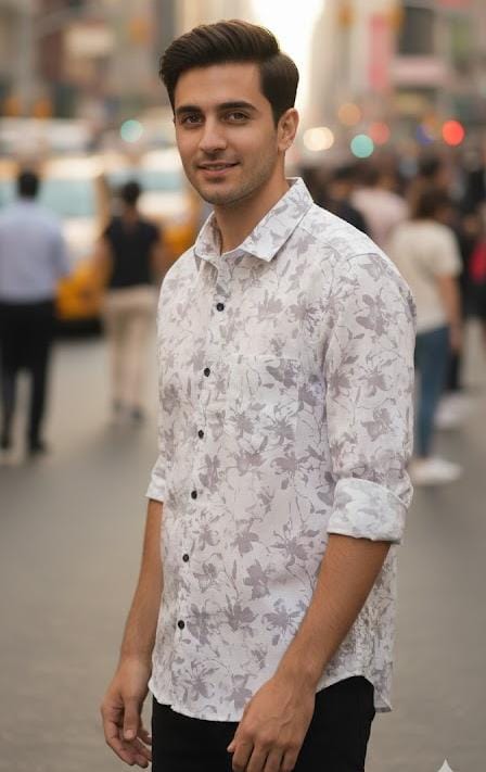light ivory base floral printed shirt